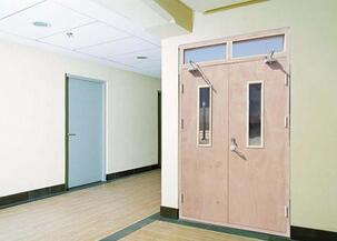 门框内部填充新型环保珍珠岩防火门芯板,使用新型防火铰链,名牌防火锁具,防火阻燃密封胶条,防火阻燃密封膨胀胶条。